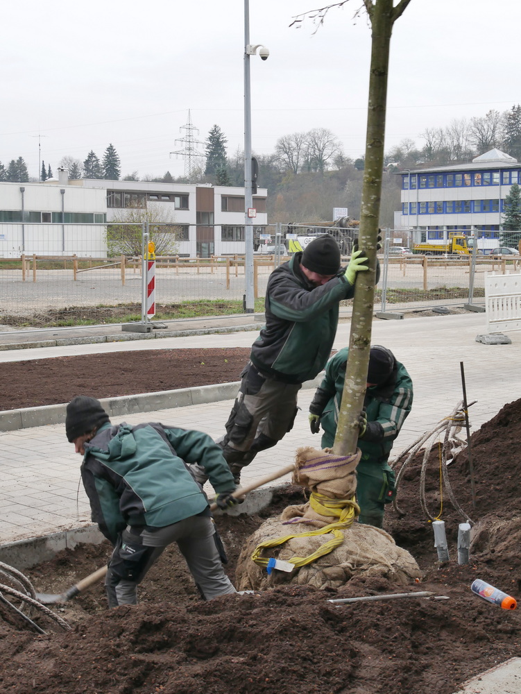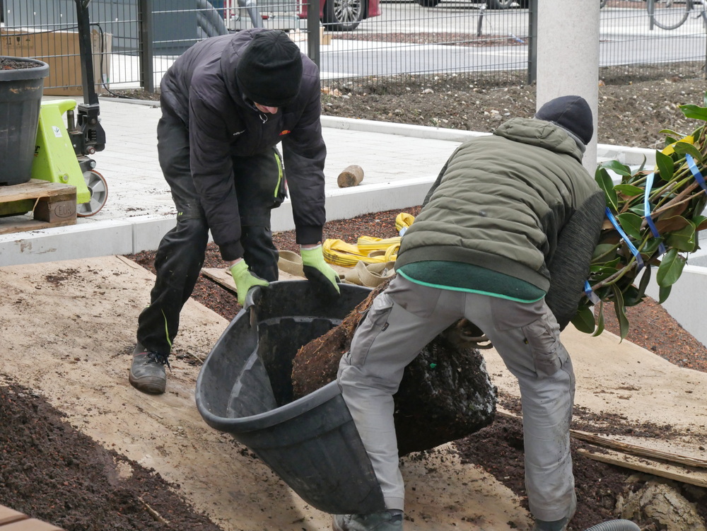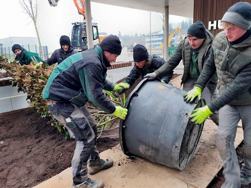 Der erste Abschnitt der Pflanzarbeiten wurde inzwischen erfolgreich abgeschlossen. Kompliment an unsere Mitarbeitenden! Wenn es die Witterung zulässt, geht es in den kommenden Tagen mit der Pflanzung von Hecken, Stauden und Blumenzwiebeln weiter.