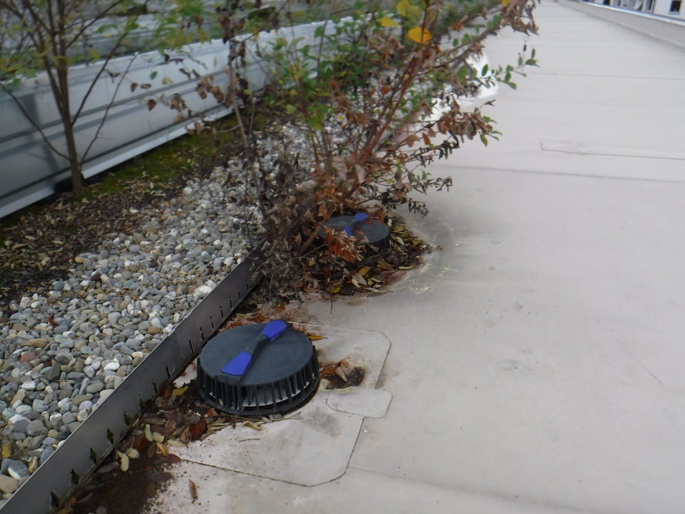 Im Herbst 2023 stand die Dachwartung bei einem unserer Firmenkunden in Winnenden an. Bei einer solchen Wartung entfernen unsere Mitarbeiter*innen unerwünschten Bewuchs, kontrollieren die Entwässerungseinrichtungen und säubern die Kiesstreifen an den technischen Einrichtungen. Einmal jährlich wird die Dachfläche gedüngt, damit sich der ursprünglich angesäte, niedrige Bewuchs (Sedum) wieder gut entwickeln kann.