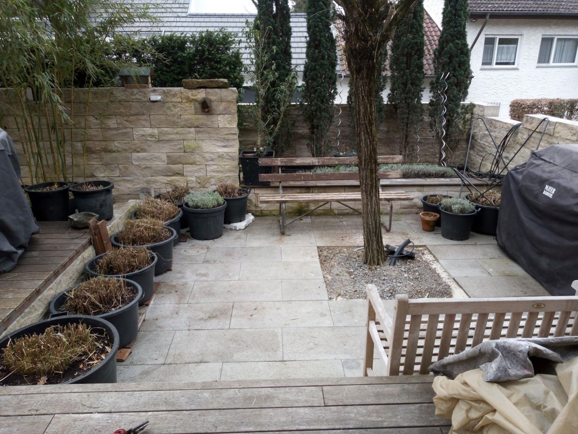 Ende Februar haben unsere Mitarbeitenden einen Privatgarten in Aichtal gepflegt. Rechtzeitig vor Beginn der neuen Vegetationsperiode haben wir das Totholz aus den Bäumen entfernt, den Bambus ausgelichtet, die Hecken und Sträucher zurückgeschnitten, Wildwuchs und Laub aus den Beeten entfernt, Erde nachgefüllt und Gräser, Lavendel und Hortensien fachgerecht geschnitten. Nun können die Pflanzen wieder kräftig austreiben, während die Eigentümer ihren Frühlingsurlaub genießen.