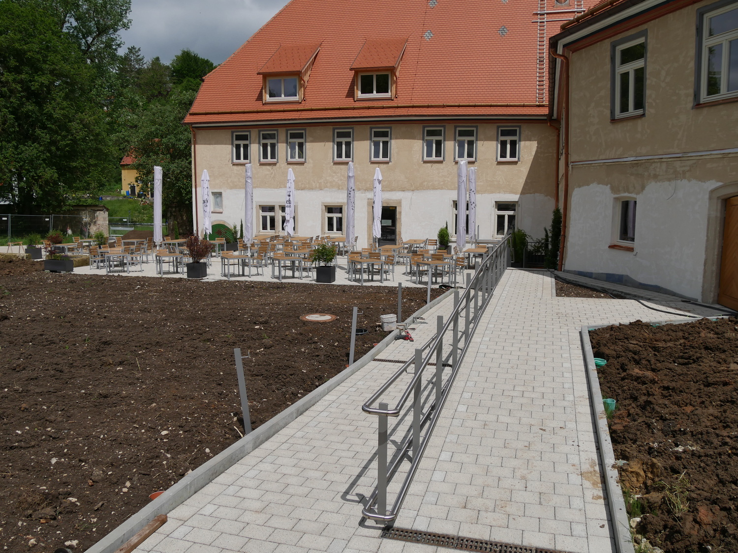 In den vergangenen Monaten hat sich bei unserem Projekt in Gomadingen-Offenhausen viel bewegt. Wir haben unter anderem die Entwässerung installiert, Treppen sowie die Einfassungen für die Pflaster- und Asphaltbeläge gebaut und die Flächen für die Rasenansaat und Staudenpflanzungen vorbereitet. Auch der Museumsvorplatz wurde von uns erneuert und die Parkplätze für die Gäste erweitert. Anfang Juni konnte der historische und denkmalgeschützte Gestütsgasthof mit seinem schönen Biergarten eröffnet werden. Im Herbst steht von unserer Seite noch die Staudenpflanzung an. Wir sind stolz auf dieses Projekt und wünschen allen Besuchern schöne Stunden im Gestütsgasthof und Museum!