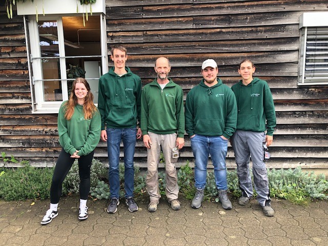 Seit dem 1.9.2023 bereichern vier neue Auszubildende (hier mit Ausbilder Hans-Jörg Kämmerle) das ProNatur-Team. Herzlich willkommen!