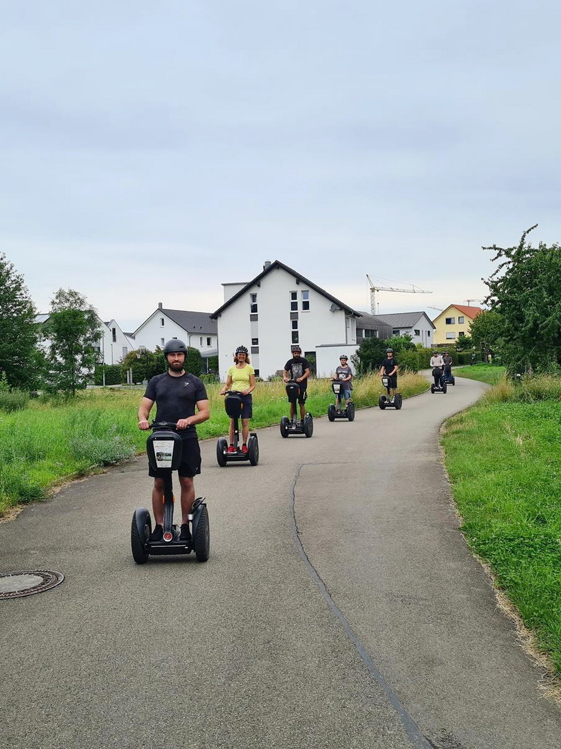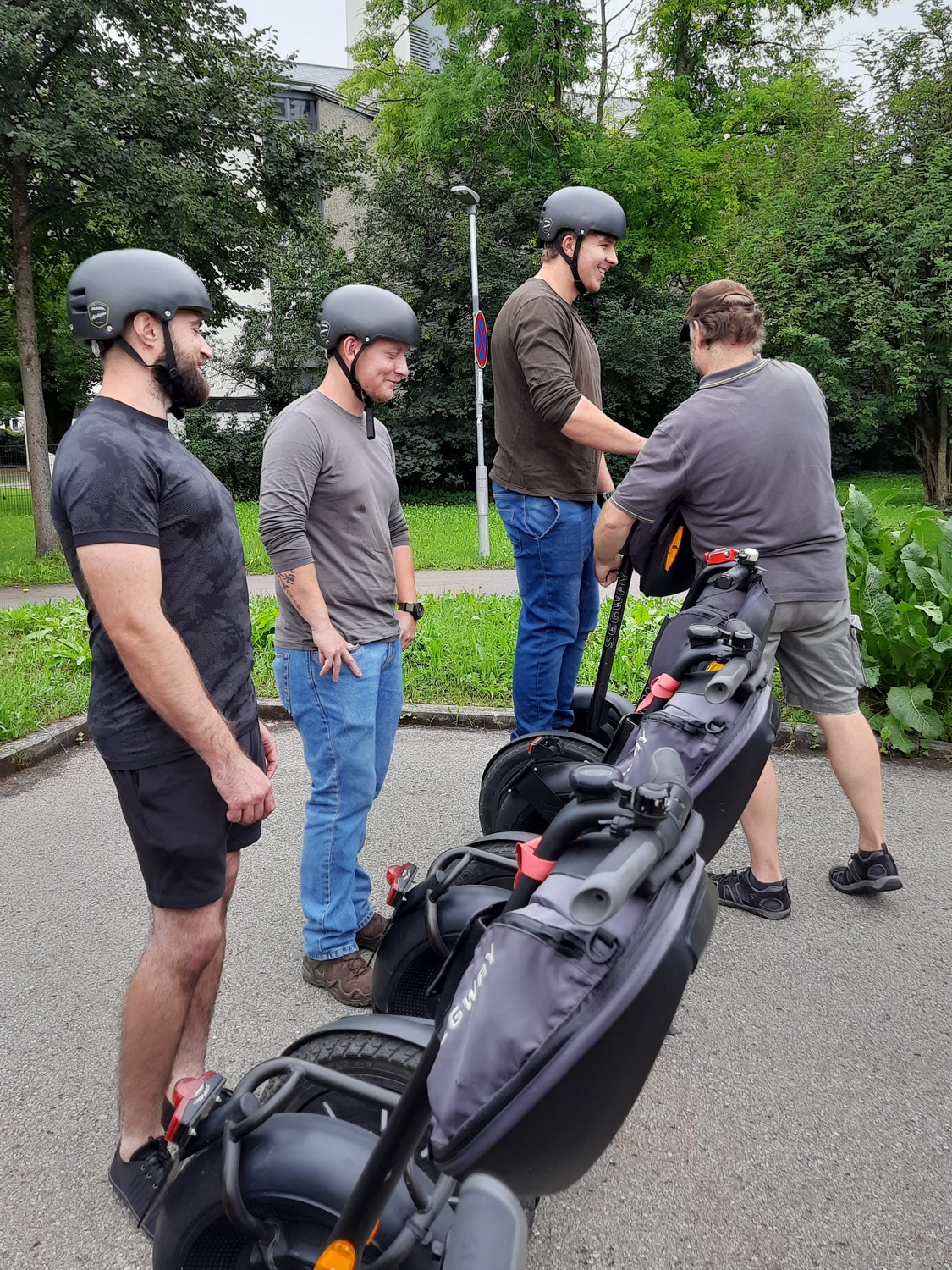 Segways werden seit einigen Jahren nicht mehr hergestellt, aber einige Veranstalter haben die zweirädrigen Spaßbringer noch im Programm und vermieten sie an Privatpersonen und Firmen. Ein Service, den ProNatur für das Betriebs-Sommerfest 2024 in Anspruch nahm und den ortsansässigen Veranstalter eMotion-Flitzer mit rund 25 Teilnehmer*innen an seine Kapazitätsgrenzen brachte. Doch gemeinsam mit einem Partnerunternehmen kamen 15 Segways zusammen, so dass wir in zwei Gruppen in unser Abenteuer auf zwei Rädern starten konnten.