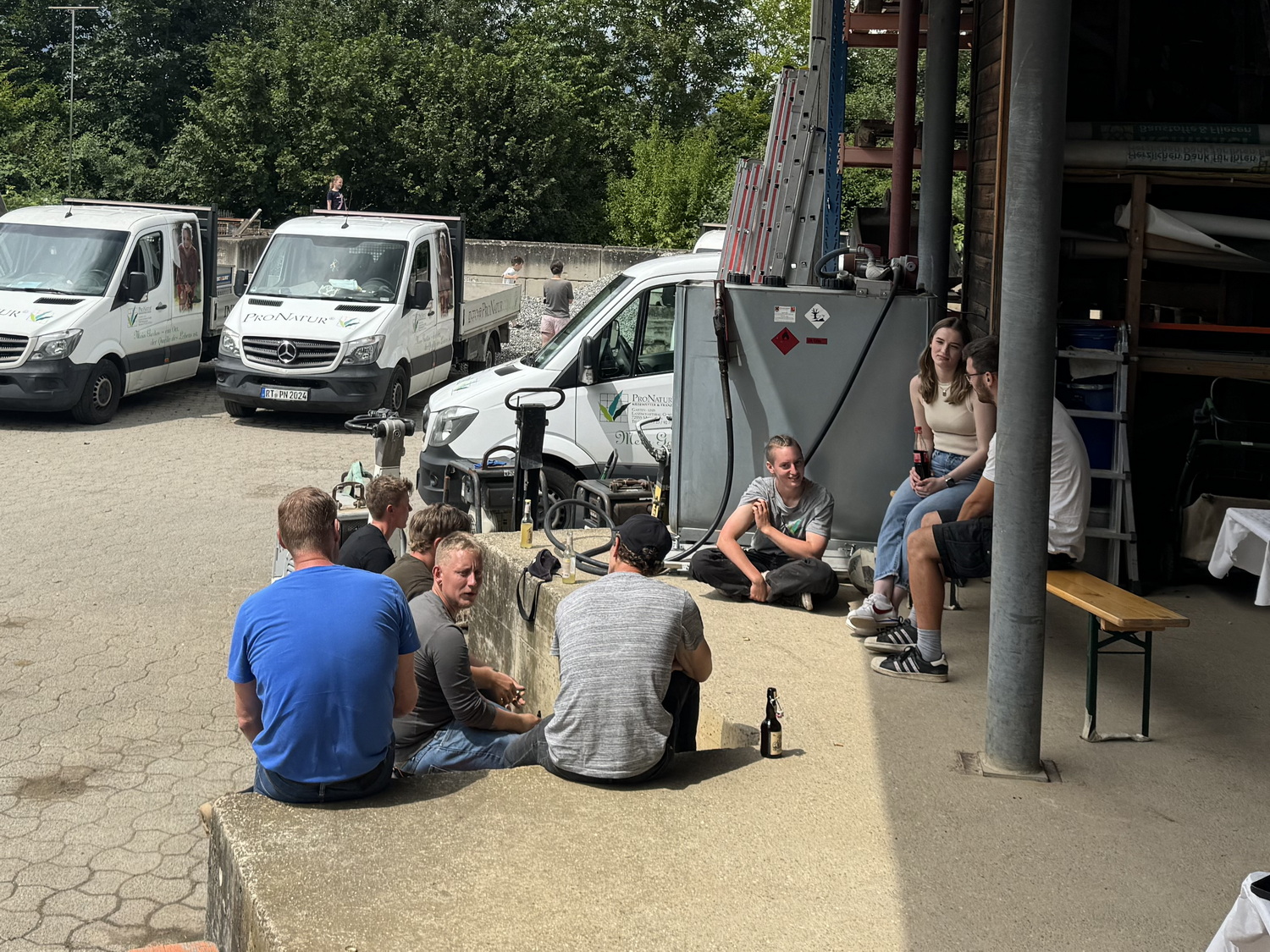 Nachdem auch die zweite Gruppe wohlbehalten zurück war, wartete beim anschließenden Sommerfest auf dem Betriebshof bereits ein fertig gebratenes Spanferkel auf uns (danke an unseren Grillmeister-Kollegen Dragan!) und wir konnten den Nachmittag gemeinsam mit unseren Kollegen und Angehörigen bei Gesprächen, Fußball und Kinderlachen genießen.