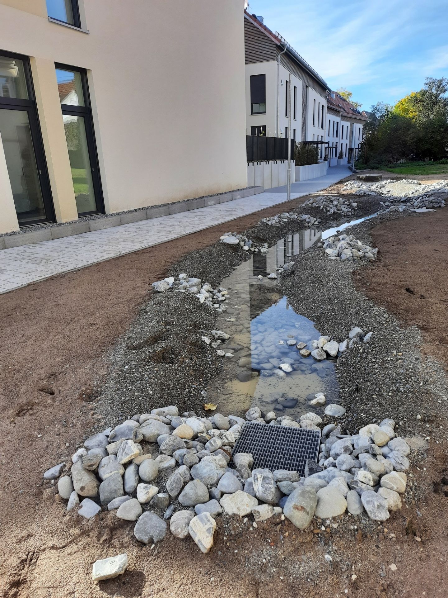 In der Haidlinsgasse im Ortszentrum von Walddorf baut ProNatur seit Sommer 2022 einen Fußweg mit angrenzendem Bachlauf, als Bereicherung der neu gestalteten Ortsmitte. Der Fußweg ist inzwischen fertiggestellt, ebenso wie das Bachbett und ein Mühlstein, der als Quelle dient. Das Wasser wird in einer Zisterne gesammelt, um anschließend zurück zum Quellstein gepumpt zu werden. Im Herbst folgt noch die Bepflanzung mit Stauden und Gehölzen. Ein schönes Projekt, das uns viel Freude macht!