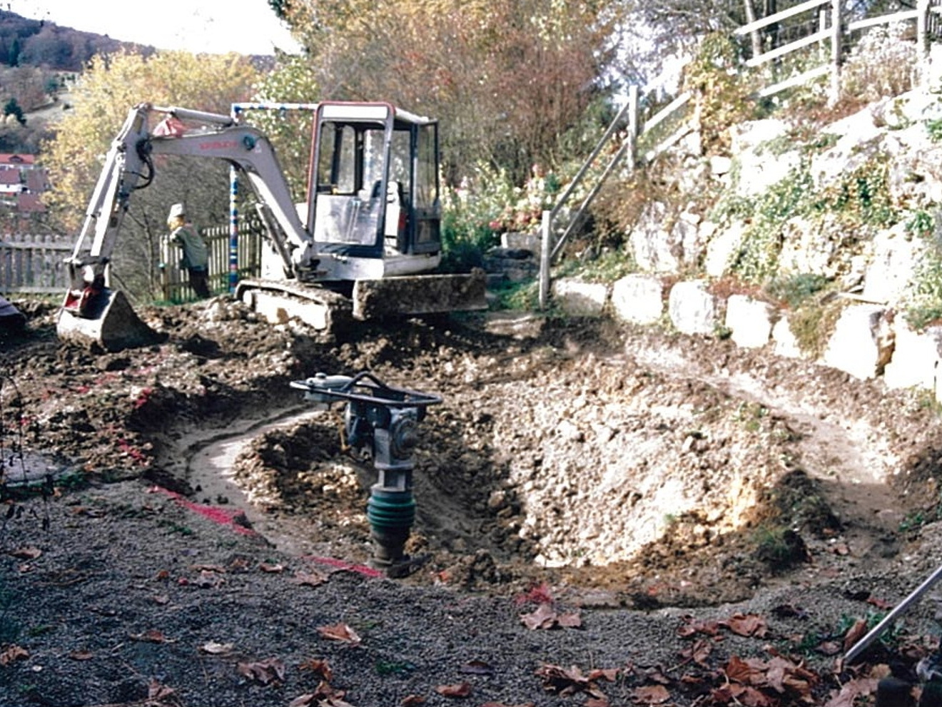Vor wenigen Tagen haben wir euch in einem Rückblick einen wunderschönen Hausgarten mit Teich in Gomadingen vorgestellt. Im Fotoalbum eines unserer langjährigen Mitarbeiter sind nun Bilder aus der Bauphase vor mehr als 20 Jahren aufgetaucht, die wir euch nicht vorenthalten wollen. Ein bisschen Nostalgie muss schon sein!