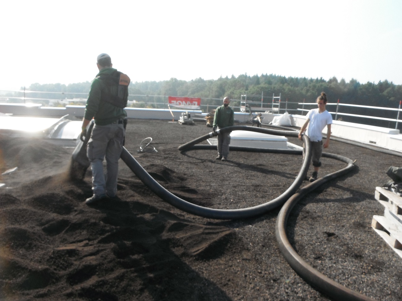 Für unseren Auszubilden im 3. Lehrjahr wurde der Ablauf der Baustelle umfassend dokumentiert. So wurde klar, welche Unterschiede zu den Bauvorhaben auf dem Boden zu beachten sind und dass gerade bei Baustellen auf dem Dach die Logistik eine sehr wichtige Rolle spielt.
