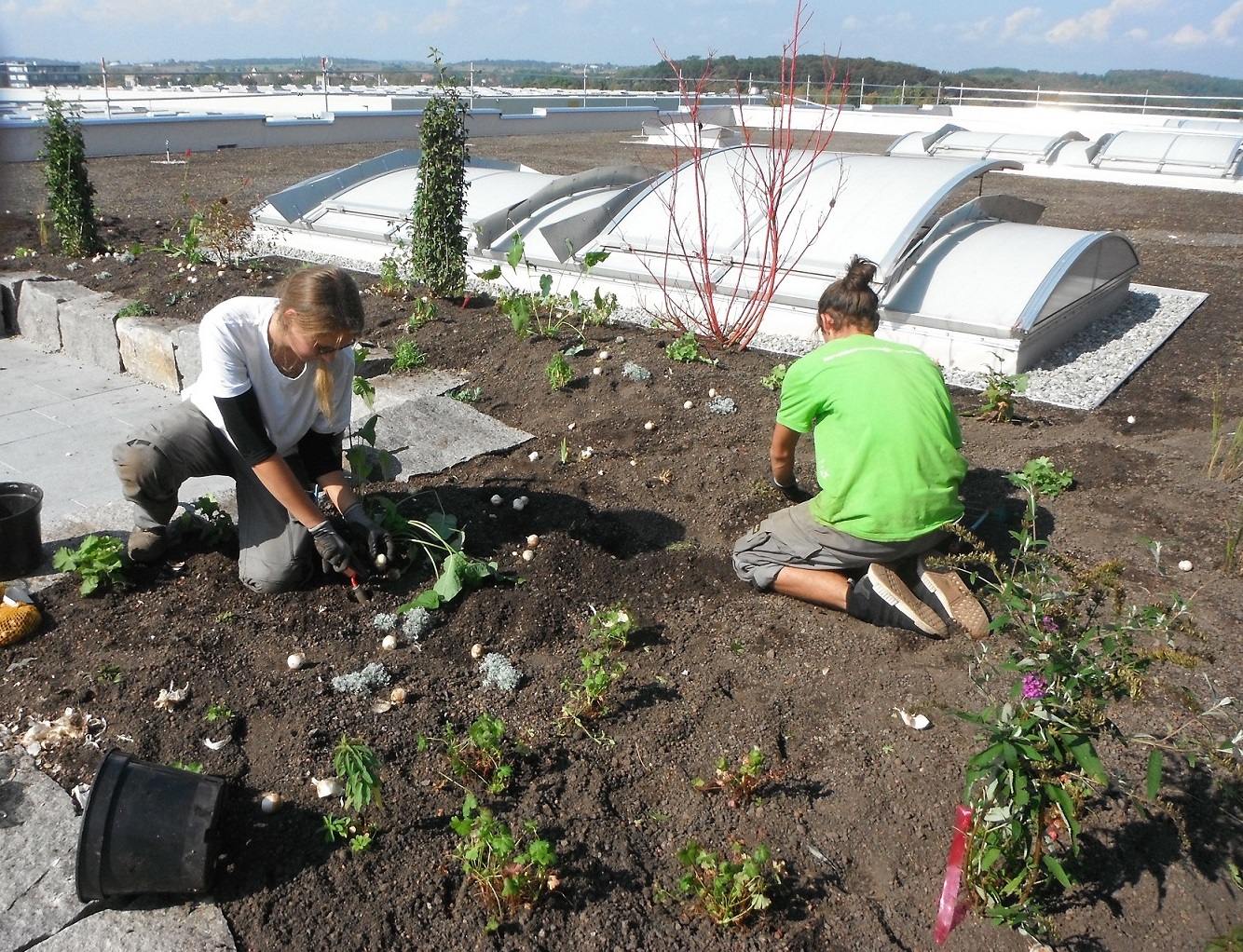 Auf dem Dach einer großen Reutlingen Firma wurde mit zum Teil vorhandenen Materialien ein attraktiver Aufenthaltsbereich für die Mitarbeiter geschaffen.