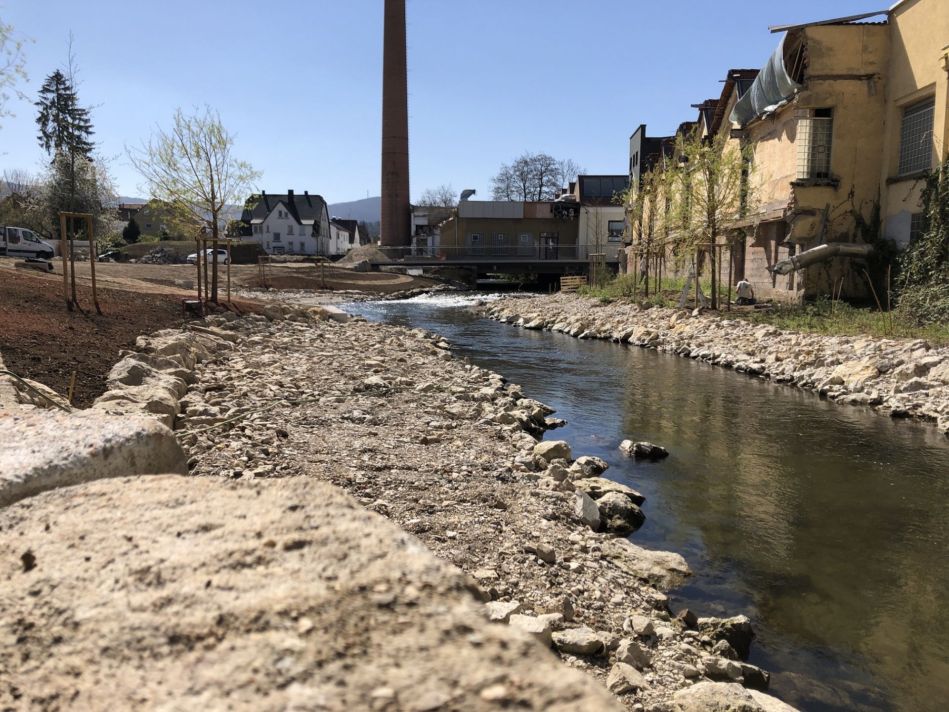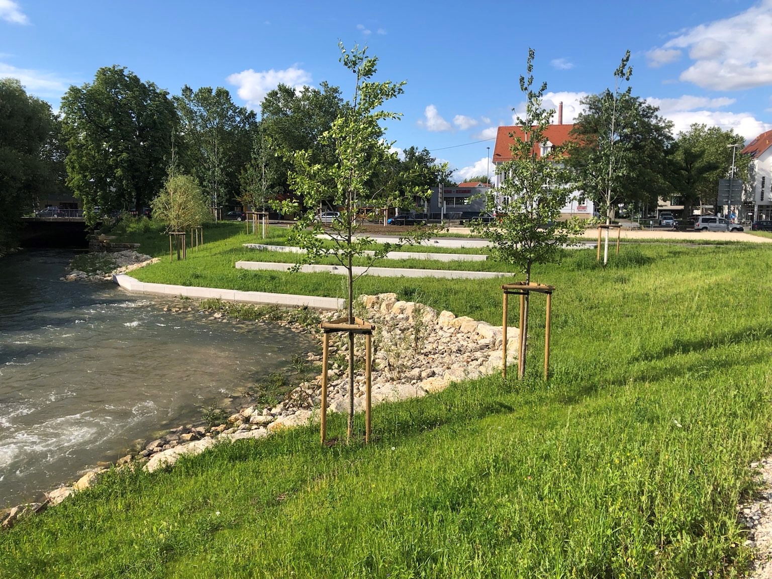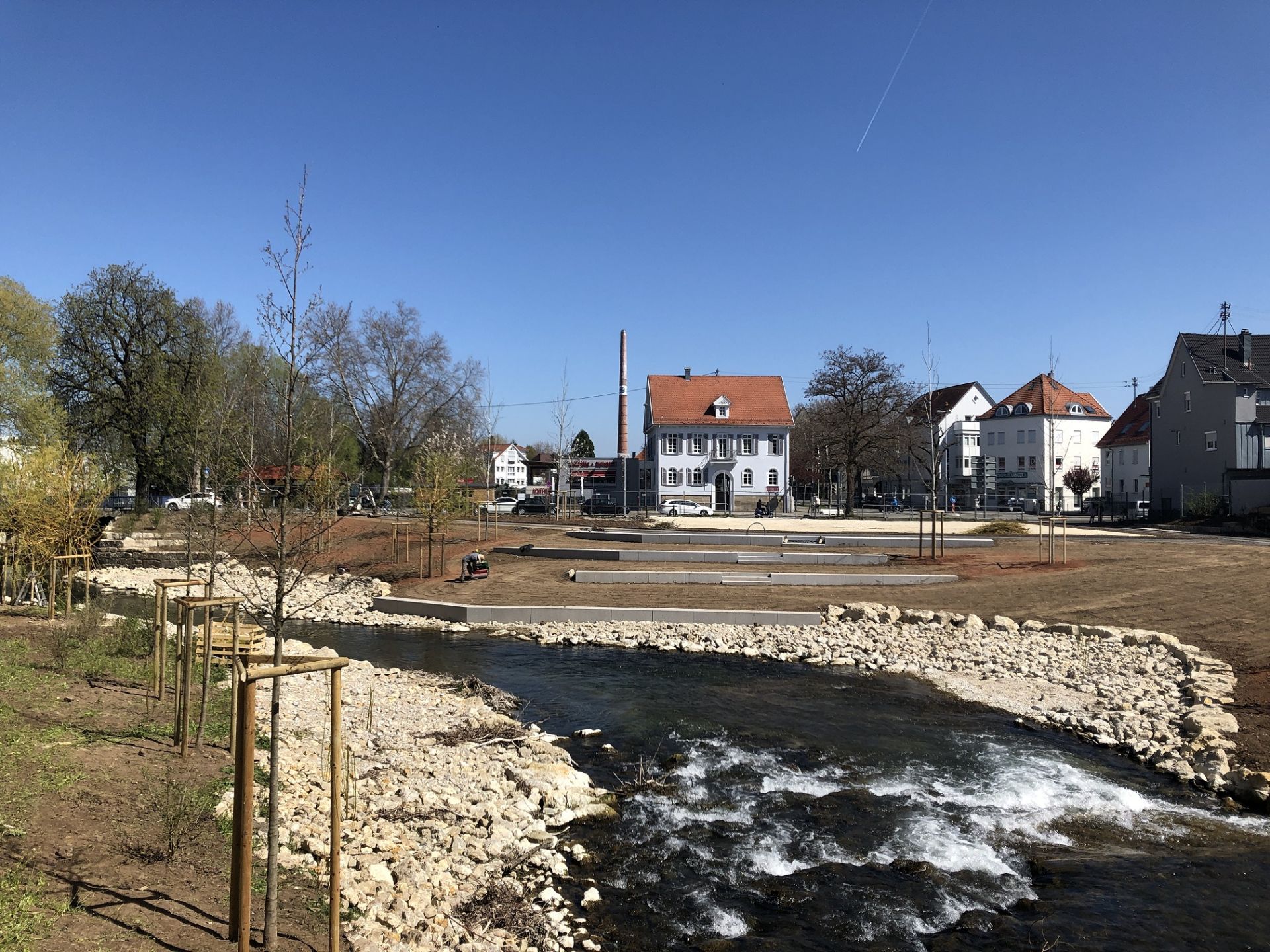 Durch die Renaturierung der Erms und ihrer Ufer werden im Bereich des ehemaligen G+V Areals