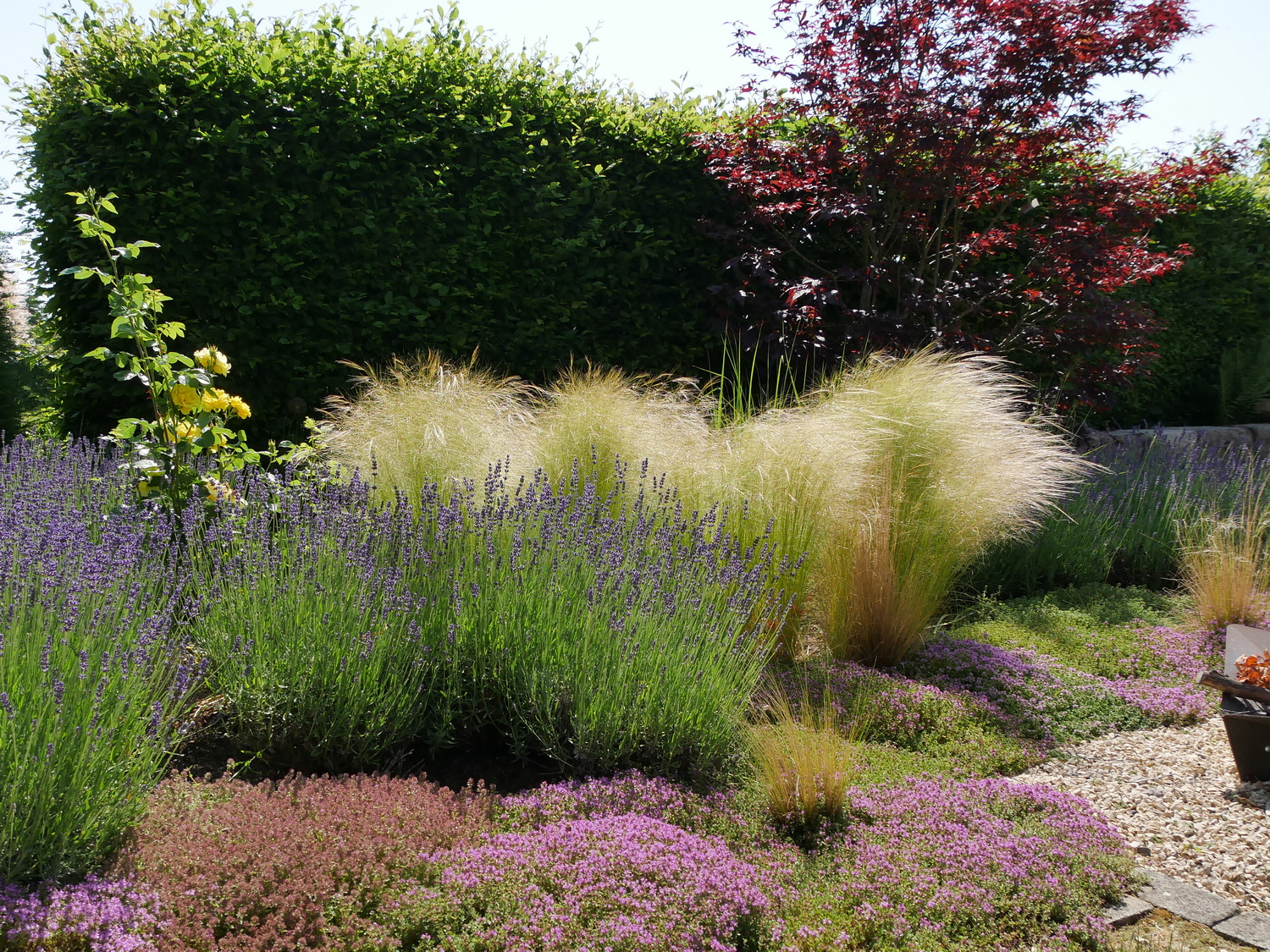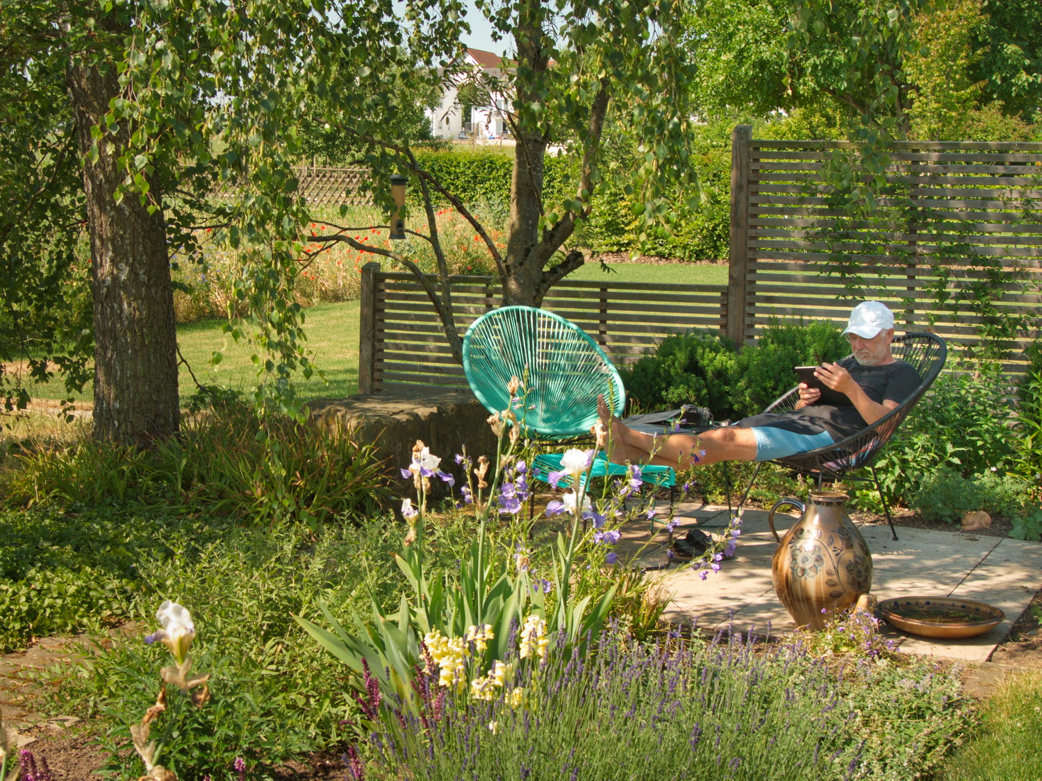 Im Frühjahr 2021 durften wir nach den Plänen der Gartenarchitektin Susanne Schäffer aus Kusterdingen einen Hausgarten in Kusterdingen-Wankheim verwirklichen. Bei unserem Besuch im Frühsommer 2023 waren wir begeistert – ein wahres Gartenjuwel mit üppig blühenden Rosen, Lavendel und Gräsern nahm uns in Empfang. Direkt am Haus lädt eine Terrasse mit Travertin-Natursteinbelag zu Grillabenden mit Freunden ein. Die große Rasenfläche ist von Staudenbeeten eingefasst. Schmale Wege führen zu zwei weiteren Sitzbereichen. Eine niedrige Hainbuchenhecke grenzt den Garten optisch zum Feld hin ab. Die Besitzer des Gartens haben uns herzlich empfangen und die Aufnahmen gerne gestattet. Sie sind immer noch begeistert von ihrer „grünen Oase“!