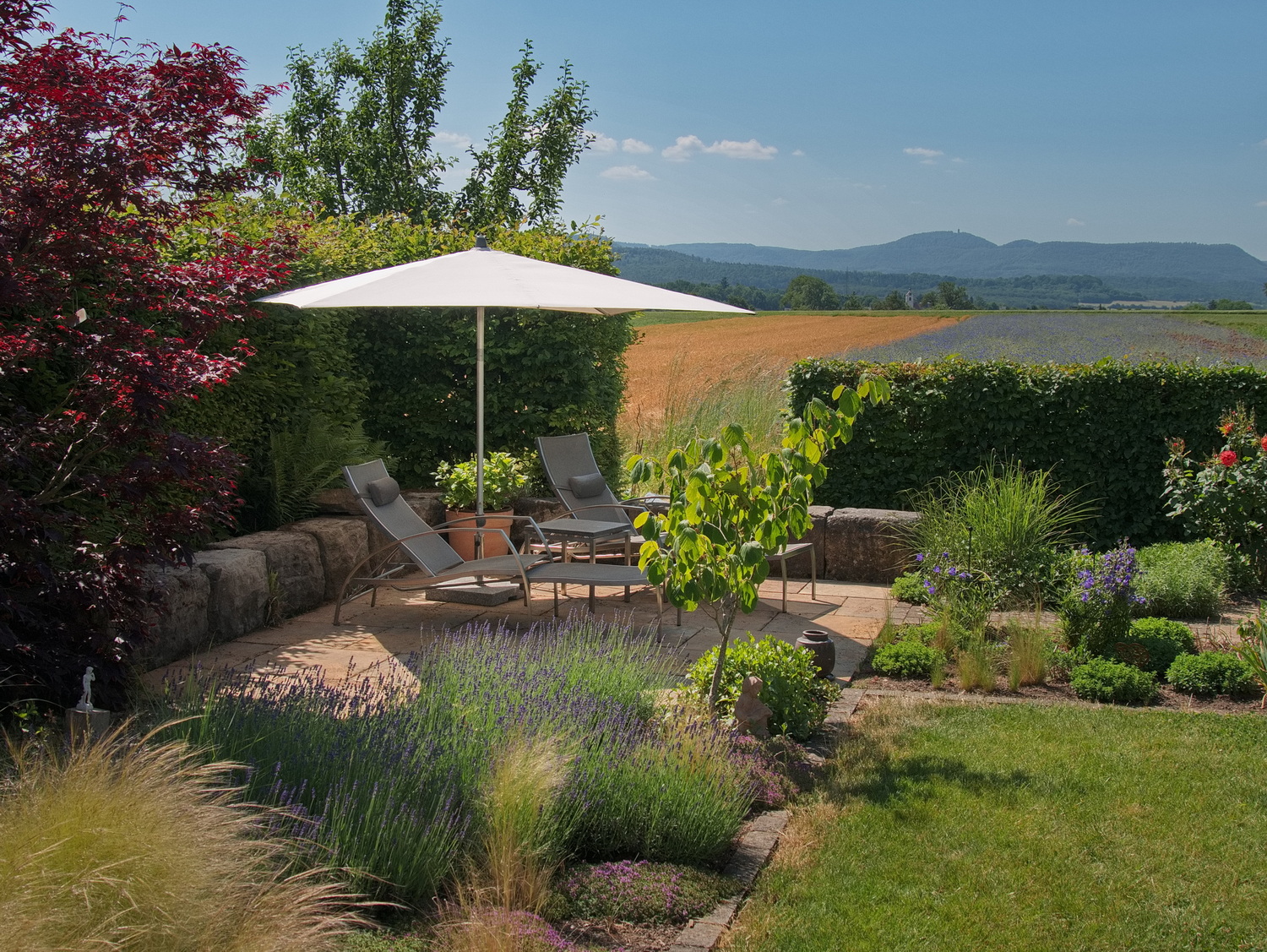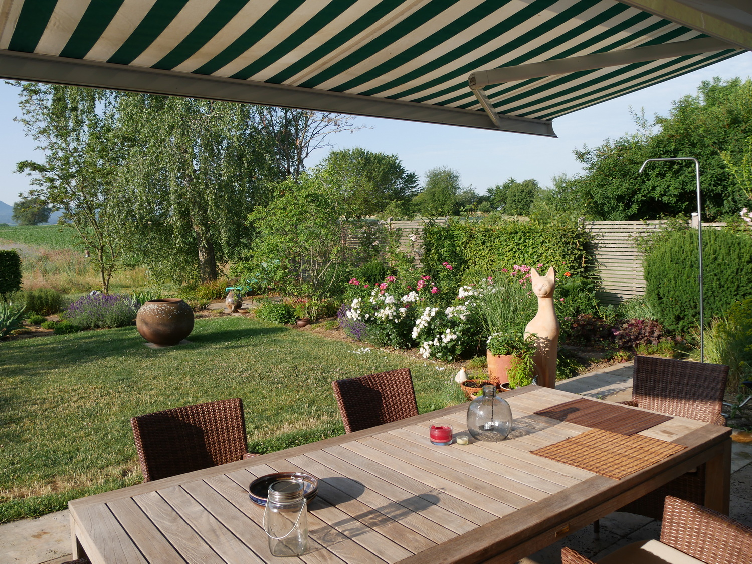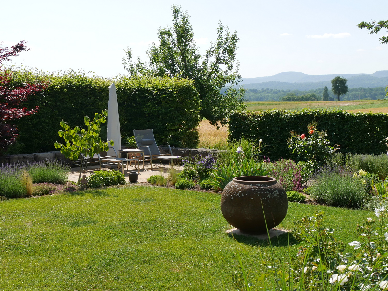 Hausgarten mit Blick auf die Felder