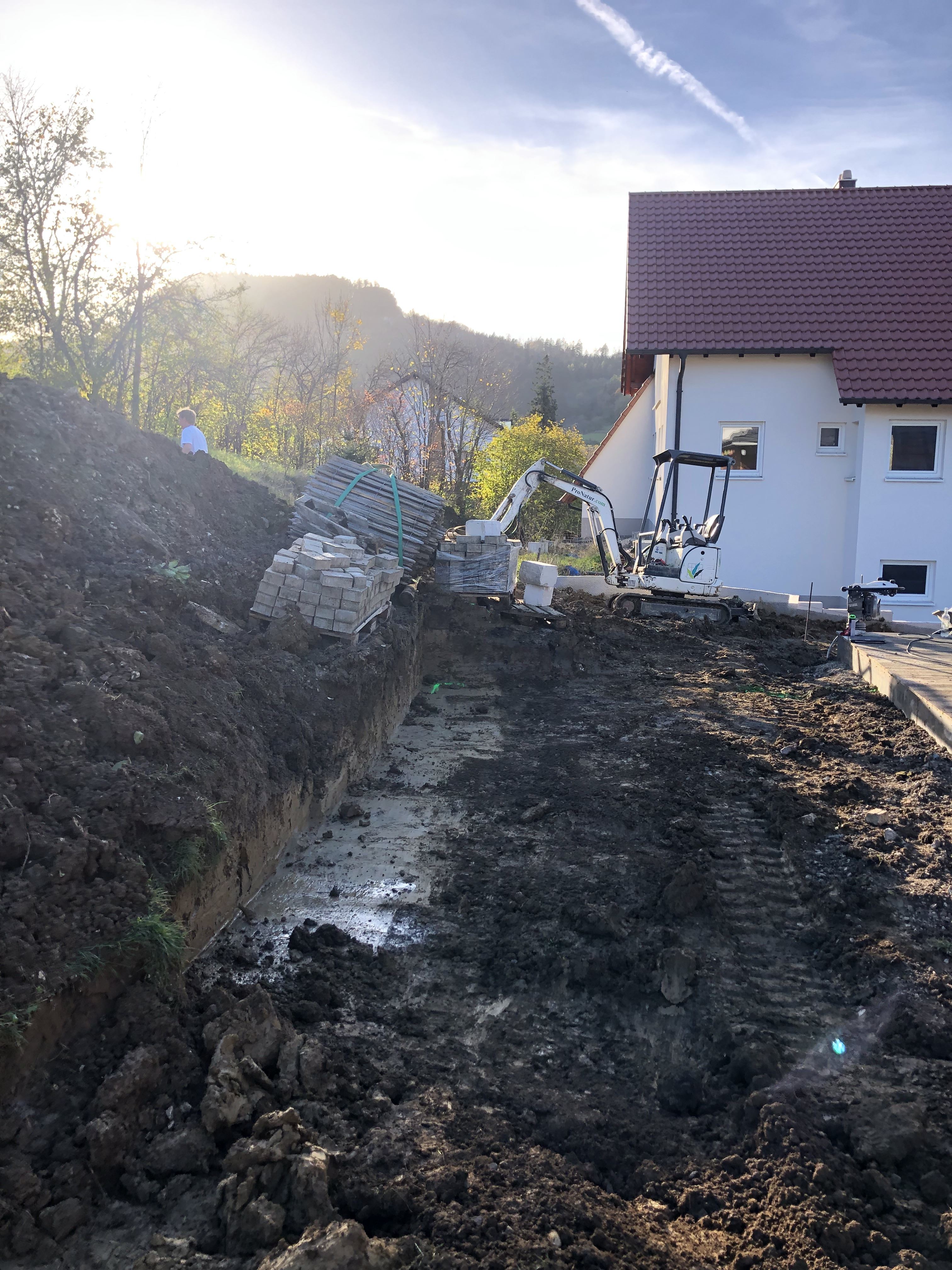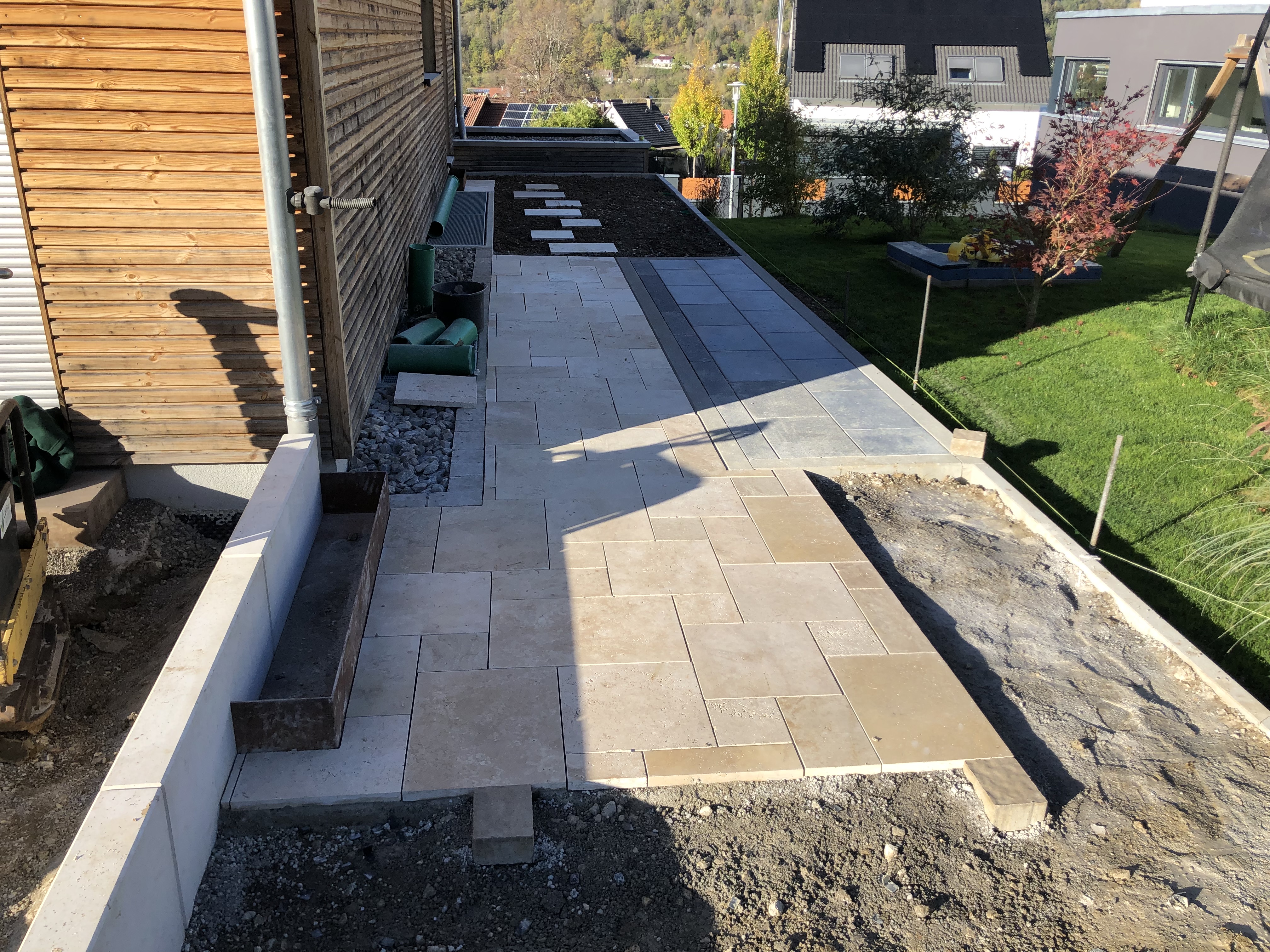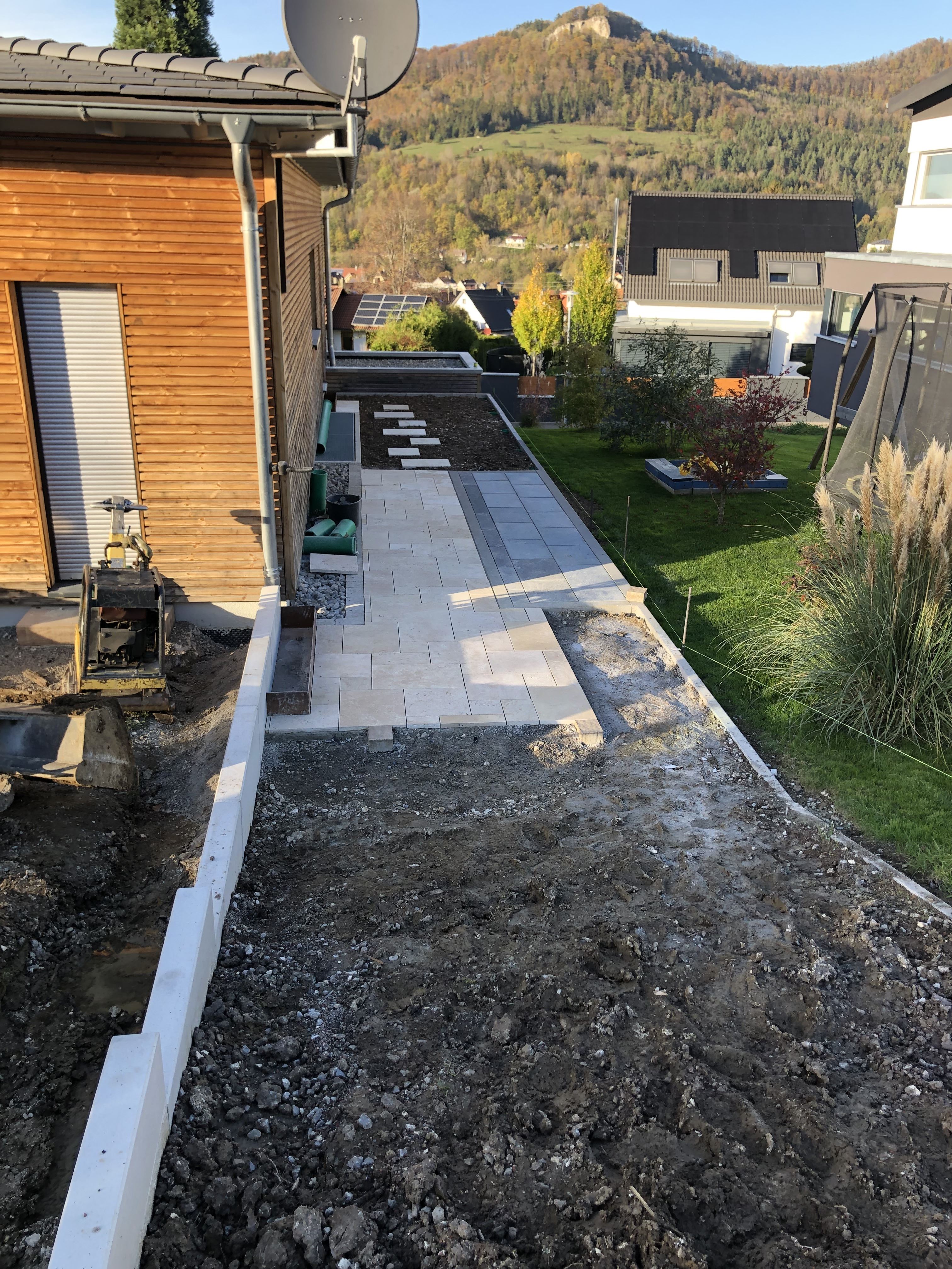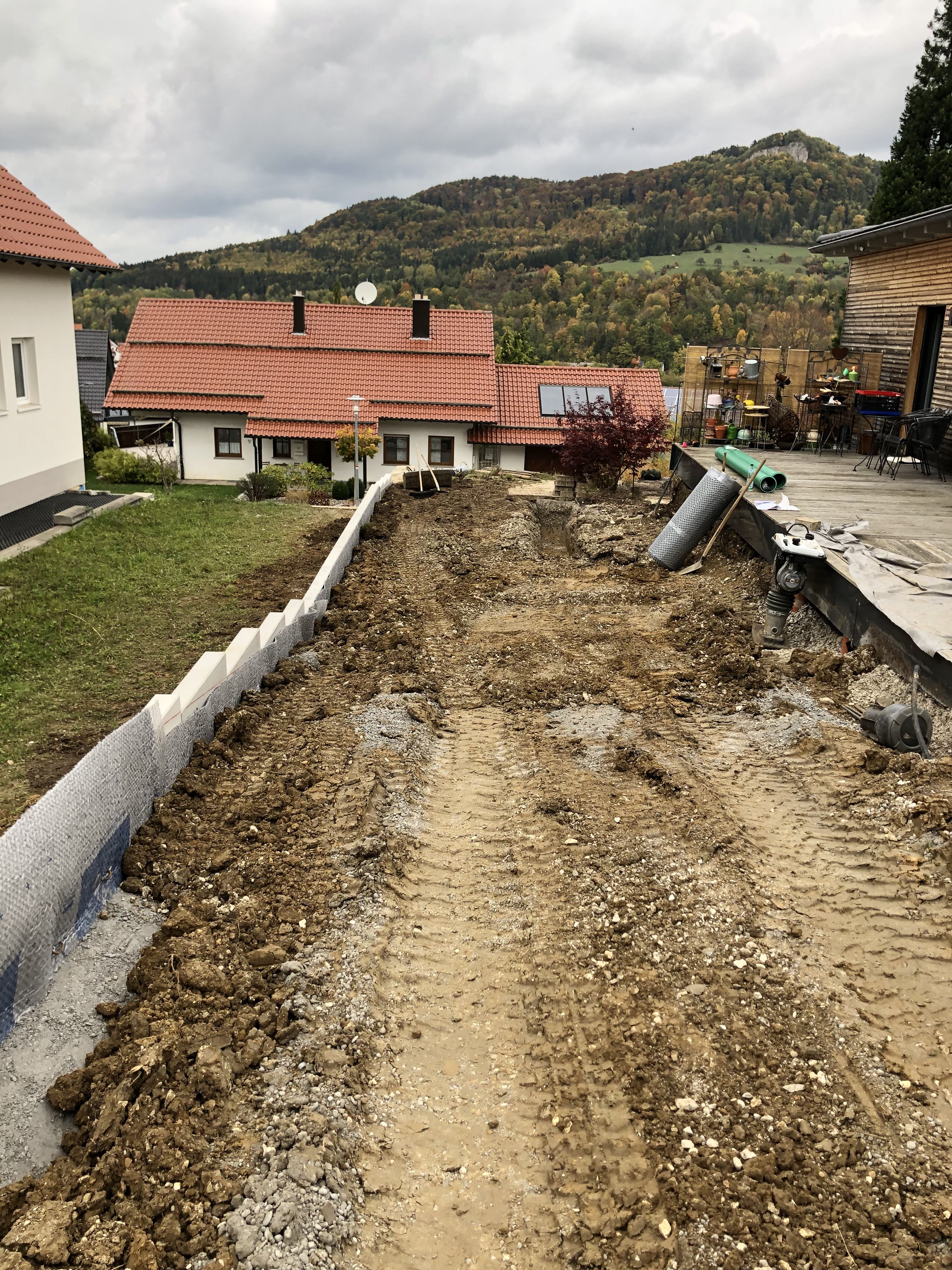 In Albstadt-Laufen gestalten wir aktuell einen großen Hausgarten um. Lediglich der Bereich vor dem nach Norden ausgerichteten Hauseingang bleibt unverändert. An der Ostseite des Hauses haben wir im Herbst einen neuen Plattenbelag verlegt. Auf der Westseite wurden die Rabatten vor der Holzterrasse verbreitert und werden nun durch eine neue, höhere Mauer aus Natursteinen begrenzt. Aktuell gestalten wir den Hang hinter dem Haus um.